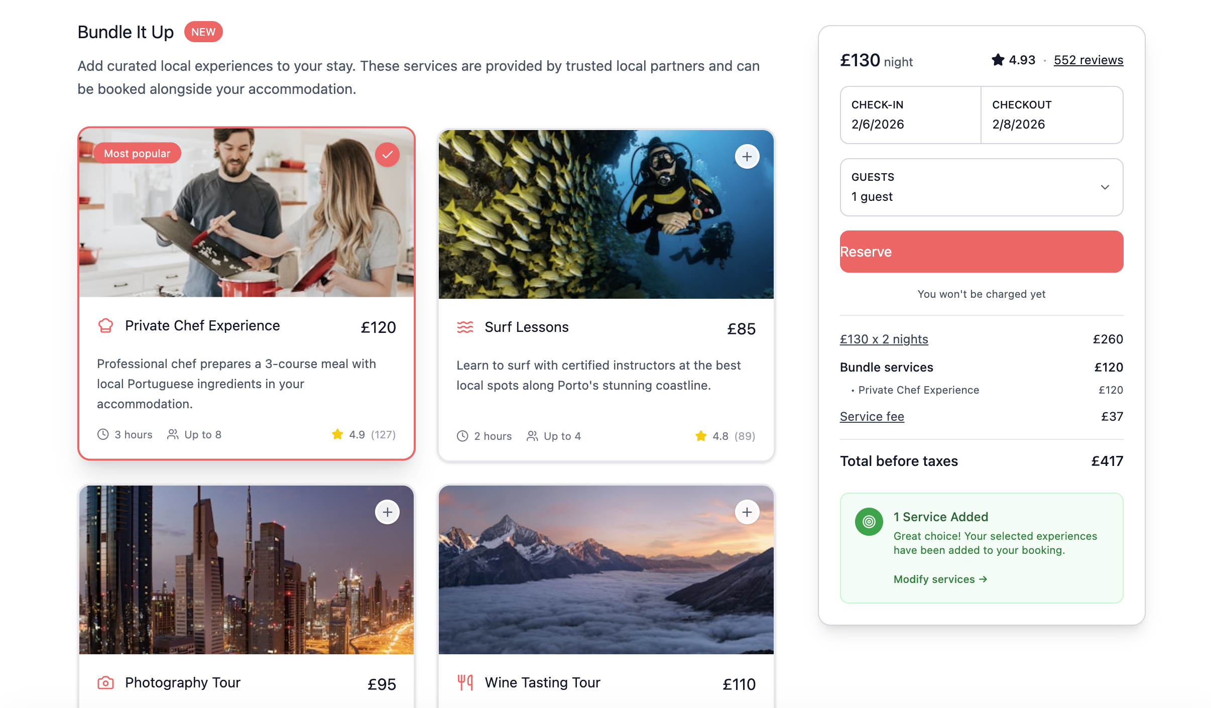 A few questions came to mind: Would established users readily discover this new tab? How does “Services” fit in with the existing user flow? As Airbnb adds more tabs, are these meant to be used together or function as standalone products? I decided to find out.