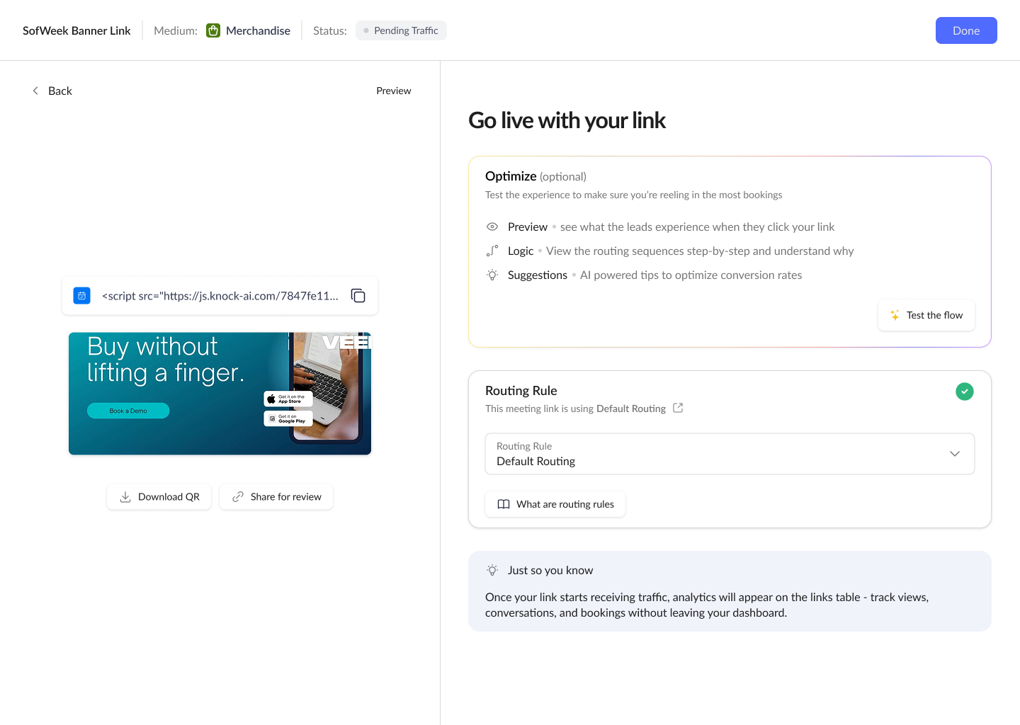 Junior SDRs specifically stalled after save. Because the link setup was swift and always assigned the default routing rule, they were unsure if they had skipped a step or done something wrong.